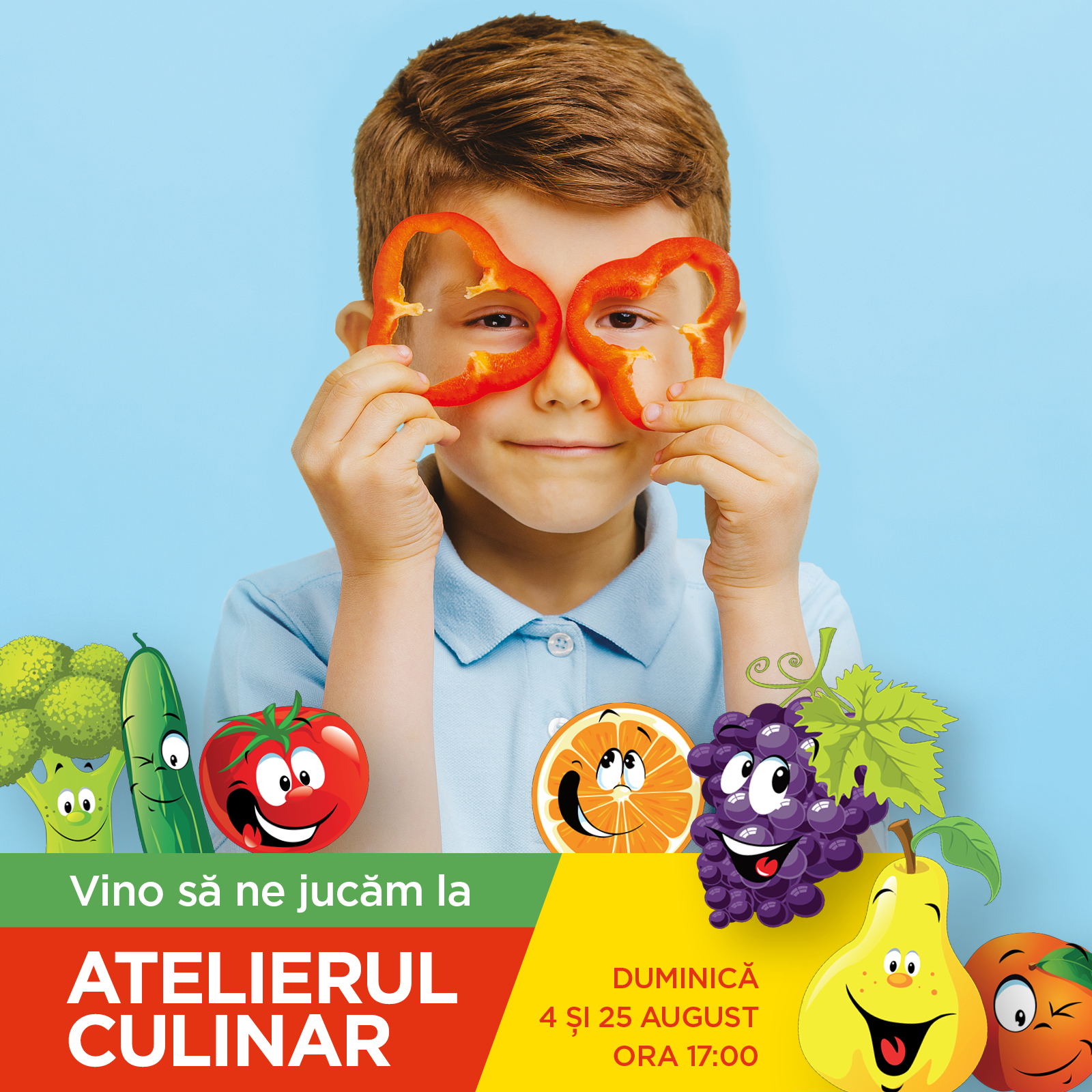 In luna august la Focșani Mall, invatam sa mancam sanatos! Asteptam micutii bucatari duminica, pe 4 si 25 august incepand cu ora 17:00, sa pregatim impreuna salate savuroase din fructe si legume proaspete. Intrarea este libera.