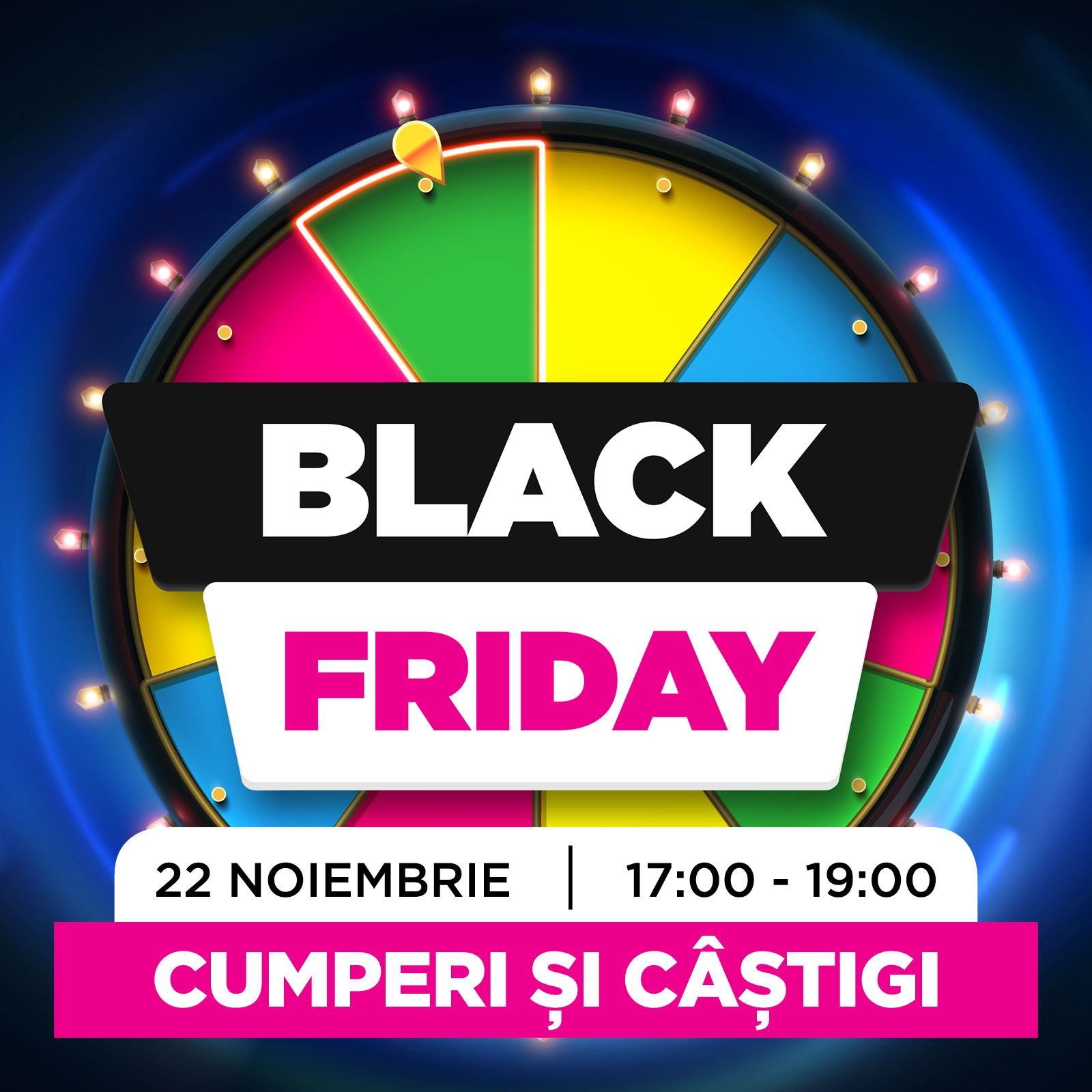 Vineri, 22 noiembrie, te asteptam la Black Friday 2019! Cumpara produse de cel putin 50 de lei, trage la Roata Castigurilor Garantate, si pleci acasa cu un premiu oferit de Focșani Mall sau magazinele partenere.