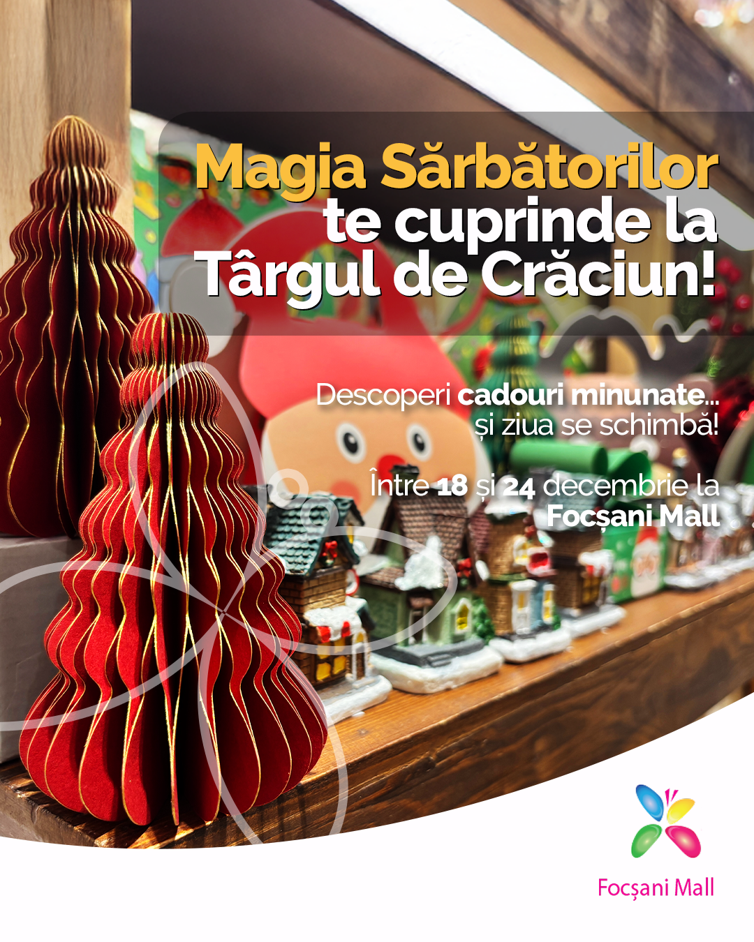 Vii la Focșani Mall și te lași purtat de magia sărbătorilor de iarnă la Târgul de Crăciun organizat între 18 și 24 decembrie!