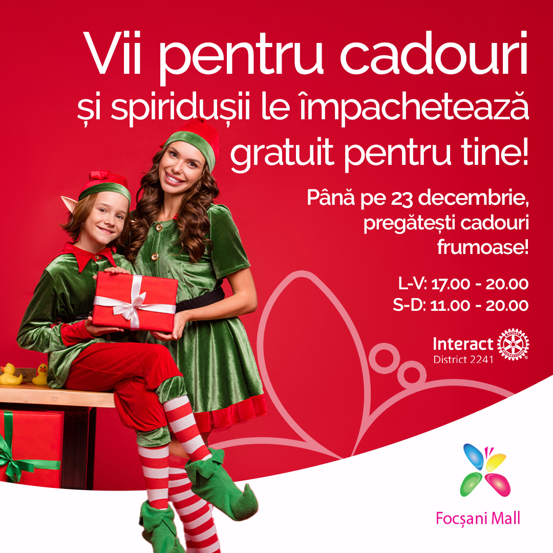 Până pe 23 decembrie, transformăm cumpărăturile tale în cadouri perfecte, gata de pus sub brad, cu serviciul de împachetare gratuită, oferit de spiridușii pricepuți ai Interact Focșani.